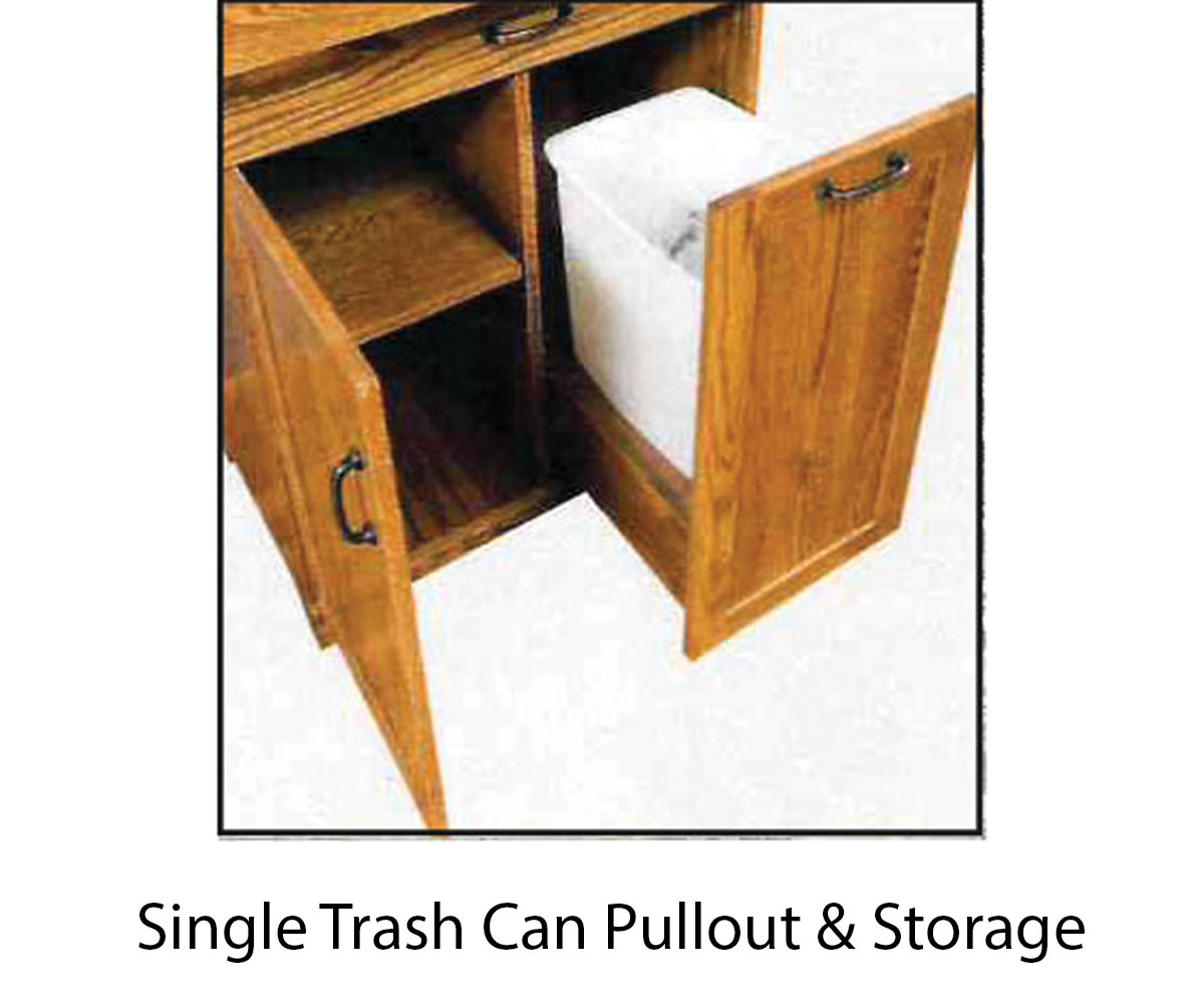 • Single trash can pull out with soft close feature